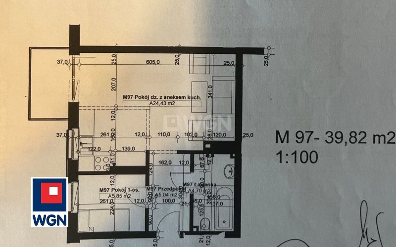 Mieszkanie o powierzchni 39,82 m2.
