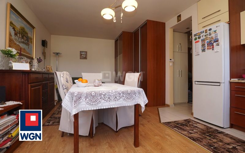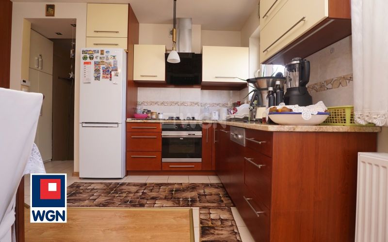 Wszystkie sprzęty w dobrym stanie technicznym. Na podłodze, w obrębie kuchni jasne płytki.